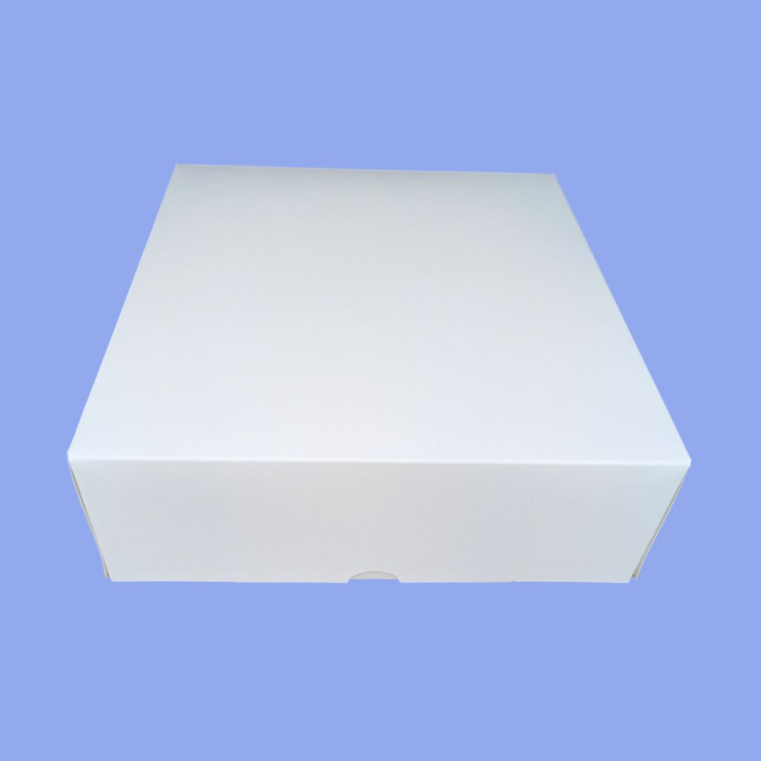 Un support doré adapté à la forme de votre création et une boîte blanche élégante en carton recyclable pour transporter sereinement votre gâteau.